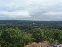 Torne Mountain (1,130 ft or 340 m; shown on topographic maps as "High Torne"), in Harriman State Park, overlooks the Ramapo Pass and remnants of the once-thriving Ramapo Iron Works. During the American Revolution, the Torne served as a lookout for British ship movements on the Hudson. Legend tells that Gen. George Washington lost his watch on the mountain, and it may still be heard ticking up there in a crevice of rock.