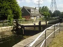 ![]() Rammey Marsh Lock looking north towards the M25 road bridge | |