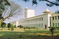 After Battle of Buxar, Nagvanshi became vassal of East India Company. British reduced Nagvanshi rulers to Jamindar in 1817 due to rebellion of Jagirdars under Nagvanshi against tax imposition by East India Company and directly ruled Chotanagpur.[25] In 1833, Captain Wilkinson established headquarter of the South-West Frontier agency in the village of Kishunpur, which he renamed into Ranchi after the hamlet located at the foot of the Hill.[26][27] In 1855, Thakur Vishwanath Shahdeo declared independene from British rule. British attacked Satranji but he defeated British forces. He ruled independently for two years.[28] In Indian Rebellion of 1857, Thakur Vishwanath Shahdeo led soldiers of Ramgarh Battalion with Madhav Singh who was Jamadar of Ramgarh Battalion. Pandey Ganpat Rai, Tikait Umrao Singh and Sheikh Bhikhari also joined rebellion. They attacked British in Ranchi and compelled to flee them. But later they were defeated by East India company forces in Chatra and in Pithuriya with the help of king of Pithuriya, Jagatpal Singh and hanged.[28][29][30] British made Ranchi as municipality in 1869 and Ranchi was first termed as a town in the census of 1872.[31] Nagvanshi shifted their capital to Ratu from Palkot in 1870. Udai Pratap Nath Shah Deo built Ratu Palace in Ratu in 1900. He donated large tracts of land to built the infrastructure of city.[32] Freedom fighter Birsa Munda died in the Ranchi jail on 9 June 1900.[33] In 1912, Jyotirindranath Tagore, the eldest brother of Rabindranath Tagore, settled in Ranchi. Tagore Hill, where his house was located, has been named after him in remembrance.[34] The last ruler of the Nagvanshi dynasty was Lal Chintamani Sharan Nath Shahdeo (1931–2014).[35]