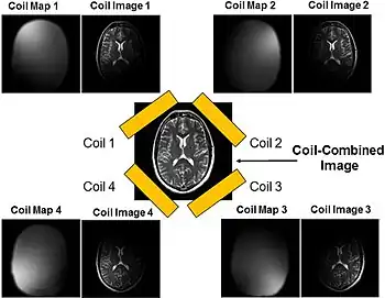 Parallel imaging involves the addition of multiple coils surrounding the target with each coil acquiring a fraction of the total image. Because modern GPUs have parallel processing capabilities, they can reconstruct each portion of the image simultaneously. Therefore, the more coils used, the faster the acquisition of the MR images.[15]