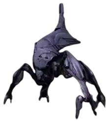 In the original trilogy, the Reapers' ground forces primarily consist of synthetic-organic creatures who were converted from harvested organic bodies. In the first two Mass Effect games, these creatures are primarily derived from humans impaled on spike-like Reaper structures called "dragon's teeth", and are called "husks". Mass Effect 2 introduced several variants of the husk unit: these include the scion, made up of several husks strung together in a grotesque manner, and the praetorian, a large monstrosity designed with numerous Husk heads visible inside its chest cavity to add a horrific and menacing feel.[10] Reaper ground forces in Mass Effect 3 also include horrific, twisted versions of the series' other extraterrestrial species, including asari, batarians, krogan, turians, and the rachni, a sentient race of telepathic insectoid beings long thought to be extinct.[12] These enemy types reflect the major fronts during the Reaper invasion in series lore, and help inform the team's approach of designing enemies that are under the command of the Reapers but are not themselves Reapers; the goal is to maintain the series' signature squad-based combat as opposed to directly pitting Shepard in an implausible fight against a colossal Reaper capital ship which is typically at least two-kilometres long.[12] There are however certain sequences in Mass Effect 3 which involve smaller versions of Reapers landing on planets to do battle with Shepard.[13] This class of Reapers, known as Destroyers, are 160 metres high and are given Sovereign's unused design of a leaf insect nymph silhouette.[14]