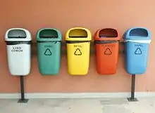 Brazil is one of the countries that least recycles in the world, behind Yemen and Syria and well below the world average, which is 9%.[9] In Brazil, the main materials for reprocessing are aluminum, steel, glass, paper and plastics.[10] They also recycle batteries, cooking oil, laminated material, refrigerators and so on.[10][11] The results of plastic recycling are significantly low, but the aluminum recycling rate is one of the highest in the world.[12]