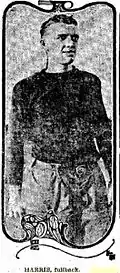 Harris featured on the offense of the 1913 team which won the Southern Intercollegiate Athletic Association (SIAA) title. One writer summarizes this: "Coach Donahue loved the fullback dive and would run the play over and over again before sending the elusive Newell wide on a sweep."[2] Harris was selected All-Southern.[3][4] One writer claims "Auburn had a lot of great football teams, but there may not have been one greater than the 1913-1914 team."[5]
