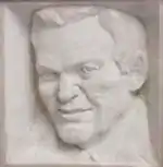 ![]() Bas-relief sculpture of Red Wallace at the Elk Lake (Pa.) High School gym which bears his name | |