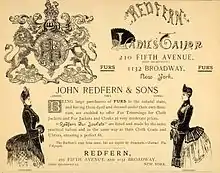 John Redfern (11 November 1820 – 22 November 1895) started out as a tailor in Cowes in 1855, following in the sartorial footsteps of his father, also John Redfern, who first opened a Cowes specialty clothing shop in 1811.[1][2] With the support of sons Ernest Redfern and Charles Poynter Redfern (1853-1929), John Redfern opened tailoring houses in London and Paris in 1881, followed by two shops in New York in 1884–85, one for tailoring, the other for furs.