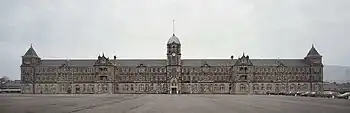 The three-storey Cavalry Barracks (55.9127°N 3.2419°W), with its tall domed clock-tower, was originally built to house a cavalry regiment, most notably the Royal Scots Greys, with a large annexe of stables and associated outbuildings. With the permanent stationing of armoured units such as the Royal Scots Dragoon Guards in Germany as part of the British Army of the Rhine, the Cavalry Barracks became a home to D squadron, Royal Scots Dragoon Guards stationed there from 1971 until disbanded in 1976.[4]