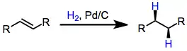 Reductions of carbon-carbon double and triple bonds are most commonly accomplished through catalytic hydrogenation:[12](9)