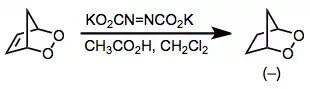 In addition, an excess of the reagent used to generate diimide (e.g. dipotassium azodicarboxylate) is required for hydrogenation because of the two competing processes of disproportionation (to N