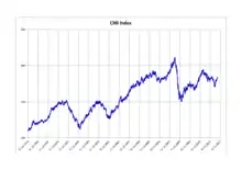 The Refinitiv/CoreCommodity CRB Index (RF/CC CRB) is a commodity futures price index. It was first calculated by Commodity Research Bureau, Inc. in 1957 and made its inaugural appearance in the 1958 CRB Commodity Year Book.