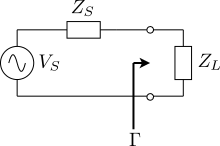 In the accompanying figure, a signal source with internal impedance possibly followed by a transmission line of characteristic impedance is represented by its Thévenin equivalent, driving the load . For a real (resistive) source impedance , if we define using the reference impedance then the source's maximum power is delivered to a load , in which case implying no reflected power. More generally, the squared-magnitude of the reflection coefficient denotes the proportion of that power that is "reflected" and absorbed by the source, with the power actually delivered to the load being .
