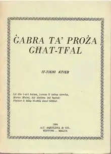- A collection of three children's prose books (1953 and 1957) l-Ġabra ta’ Proża għat-Tfal[2]