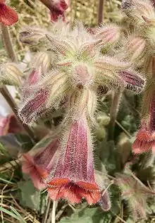 Rehmannia is a genus of seven species of flowering plants in the order Lamiales and family Orobanchaceae, endemic to China.[2] It has been placed as the only member of the monotypic tribe Rehmannieae,[1][3] but molecular phylogenetic studies suggest that it forms a clade with Triaenophora.[4] Contrary to the immense majority of the taxa of Orobanchaceae, Rehmannia is not parasitic.