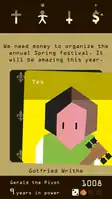 Throughout the course of the game, the player may experience different kinds of events, which are scripted or caused by the player's decisions. Such events can have one-time or recurring effects on the game, such as causing the death of the next advisor if their suggestion is rejected.[5]