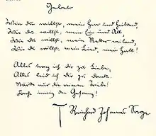 To the distress of Germany's Expressionist movement, Sorge vowed, "Thenceforth my pen has been and forever will be Christ's stylus—until my death."[13] As a result, his subsequent writings were all centered on fervently religious themes. Admirers of avant garde theater, however, were disappointed by the more traditional stagecraft of Sorge's subsequent plays.[14]