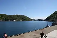 The Lille Presteskjær Lighthouse is located at the mouth of the fjord, just south of the village. A railway line was constructed in the 1860s for bringing ore from the Blåfjell Mines to Rekefjord for shipment. The railway has since closed and today it is a pedestrian and bicycle path.[2]