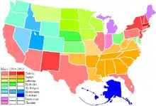 According to a 2017 study from the Public Religion Research Institute, the percentage of unaffiliated individuals was 36% (second-highest to Vermont, which was reported 41% religiously-unaffiliated).[3]