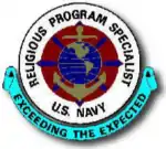 Religious program specialist (RP) is a United States Navy rating. Religious program specialists assist naval chaplains in their duties as well as provide support to naval chaplains in developing programs to meet the needs of U.S. Navy sailors, U.S. Marines, and their families. They also act as armed bodyguards for the chaplains (who are largely unarmed).[1][2][3] RPs perform functions that do not require ordination and do no pastoral counseling; adherence to a religion is not a requirement or prerequisite to become an RP and some RPs are even atheists.[4][5][6]