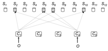 When is extremely large, a skeleton-based variant can improve running time.[28][29][30] This approach creates a virtual hierarchical structure (called a "skeleton"), and achieves running time by applying HRW at each level while descending the hierarchy. The idea is to first choose some constant and organize the sites into clusters Next, build a virtual hierarchy by choosing a constant and imagining these clusters placed at the leaves of a tree of virtual nodes, each with fanout .