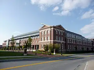 The modern campus features the Jonsson-Rowland Science Center (J-ROWL) (1961), Materials Research Center (MRC) (1965), Rensselaer Union (1967), Cogswell Laboratory (1971), Darrin Communications Center (DCC) (1973), Jonsson Engineering Center (JEC) (1977), Low Center for Industrial Innovation (CII) (1987), a public school building which was converted into Academy Hall (1990), and the Center for Biotechnology and Interdisciplinary Studies (2004).[12] Tunnels connect the Low Center, DCC, JEC and Science Center. A tenth dormitory named Barton Hall was added to Freshman Hill in August 2000, featuring the largest rooms available for freshmen.[47]