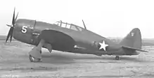 During the Italian campaign, the "1º Grupo de Caça da Força Aérea Brasileira" (Brazilian Air Force 1st Fighter Squadron) flew a total of 48 P-47Ds in combat (of a total of 67 received, 19 of which were backup aircraft). This unit flew a total of 445 missions from November 1944 to May 1945 over northern Italy and Central Europe, with 15 P-47s lost to German flak and five pilots being killed in action.[28] In the early 1980s, this unit was awarded the "Presidential Unit Citation" by the American government in recognition for its achievements in World War II.[29]