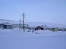 ![]() Resolute in August 1997. Visible on the left is a long school building (brown). | |