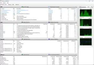 Resource Monitor, a utility in Windows Vista and later, displays information about the use of hardware (CPU, memory, disk, and network) and software (file handles and modules) resources in real time.[1] Users can launch Resource Monitor by executing resmon.exe (perfmon.exe in Windows Vista).