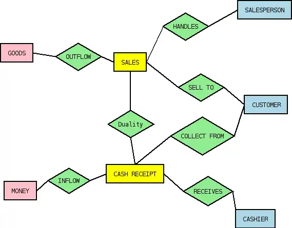 At the heart of each REA model there is usually a pair of events, linked by an exchange relationship, typically referred to as the "duality" relation. One of these events usually represents a resource being given away or lost, while the other represents a resource being received or gained. For example, in the sales process, one event would be "sales"—where goods are given up—and the other would be "cash receipt", where cash is received. These two events are linked: a cash receipt occurs in exchange for a sale, and vice versa. The duality relationship can be more complex, e.g., in the manufacturing process, it would often involve more than two events (see Dunn et al. [2004] for examples).