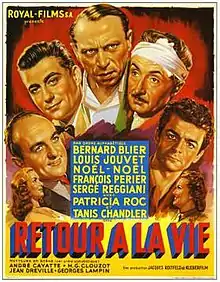Return to Life (French: Retour à la vie) is a 1949 French drama portmanteau film in five parts directed by Georges Lampin, André Cayatte, Henri-Georges Clouzot and Jean Dréville (who directed the last two parts). It was entered into the 1949 Cannes Film Festival.[1]