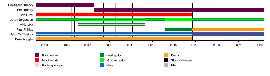 Rev Theory (formerly known as Revelation Theory) is an American rock band formed in 2002 in North Andover, Massachusetts. The band has released four studio albums: Truth Is Currency (2005), Light It Up (2008), Justice (2011) and The Revelation (2016), as well as three EPs: Revelation Theory EP (2004), Acoustic Live from the Gibson Lounge (2009) and Take 'Em Out (2012). The song "Hell Yeah" was the opening theme song for the popular Spike show Blue Mountain State and the song "We Own The Night" was the main theme song for the WWE Network reality series Breaking Ground. The song "Voices" is currently being used by World Wrestling Entertainment (WWE) wrestler Randy Orton.