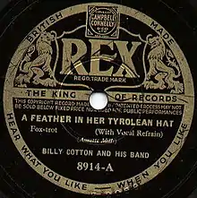 Rex Records was a United Kingdom-based record label founded in 1933 by the Crystalate Gramophone Record Manufacturing Company, also the parent of British Imperial Records. Rex released their first discs in September 1933, with the initial release bearing a catalogue number of 8000 or 8001.[1] The company was taken over by Decca Records in March 1937. Rex Records were sold at Marks & Spencer's chain stores.