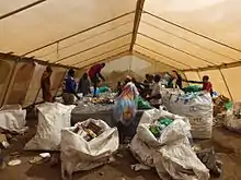 One of the main environmental challenges of organising an event with close to 3,000 participants and spectators in the most remote wilderness areas of Kenya is the management of waste. Keeping with Rhino Ark's conservation mission, the Rhino Charge Committee is committed to leaving each venue as it was found. To this end, stringent rules have been set by the Committee to ensure that no waste is left in the entire Rhino Charge venue. This includes a fine system that is strictly implemented to address wastes by competitors. In addition, with the support of key sponsors, wastes are collected across the venue, including in the Spectator Camp and at the Gauntlet. To promote waste recycling, a Waste Sorting Station is set up at the venue. Glass, cans and tins, plastic bottles, among others, are separated and brought back to Nairobi for recycling. In the 2013 event, almost 50 cubic metres of waste were properly sorted and removed from the venue for recycling.[11]