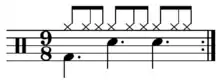 In his television series How Music Works, Howard Goodall presents theories that human rhythm recalls the regularity with which we walk and the heartbeat.[11] Other research suggests that it does not relate to the heartbeat directly, but rather the speed of emotional affect, which also influences heartbeat. Yet other researchers suggest that since certain features of human music are widespread, it is "reasonable to suspect that beat-based rhythmic processing has ancient evolutionary roots".[12] Justin London writes that musical metre "involves our initial perception as well as subsequent anticipation of a series of beats that we abstract from the rhythm surface of the music as it unfolds in time".[13] The "perception" and "abstraction" of rhythmic measure is the foundation of human instinctive musical participation, as when we divide a series of identical clock-ticks into "tick-tock-tick-tock".[14][15]