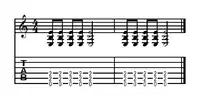 The guitar in reggae usually plays the chords on beats two and four, a musical figure known as skank or the 'bang'. It has a very dampened, short and scratchy chop sound, almost like a percussion instrument. Sometimes a double chop is used when the guitar still plays the off beats, but also plays the following 16th or 8th beat on the up-stroke. Depending on the amount of swing or groove, this next secondary stab is often the 16th note sounding closer to an 8th placement in the rhythm. An example is the intro to "Stir It Up" by The Wailers. Artist and producer Derrick Harriott says, "What happened was the musical thing was real widespread, but only among a certain sort of people. It was always a down-town thing, but more than just hearing the music. The equipment was so powerful and the vibe so strong that we feel it."[9] Reggae chords are typically played without overdrive or distortion.