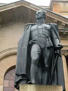 The bronze statue of Bourke outside the State Library of New South Wales in Sydney was the first public statue ever erected in Australia. It was dedicated on 11 April 1842.[9] It records his accomplishments as governor in florid detail. It was funded by public subscription and made by Edward Hodges Baily in London.[10]