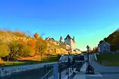 Most of the locks are still hand-operated. There are a total of 45 locks at 23 stations along the canal, plus two locks (locks 33 and 34) at the entrance to the Tay Canal (leading to Perth).[35] The elevation between the Ottawa River and its summit at Upper Rideau Lake, is 83 metres (273 feet), the elevation change from Upper Rideau Lake to Lake Ontario is 50 metres (164 feet).[36] Furthermore, there are four blockhouses and some of the original 16 defensible lockmasters residences along the waterway. The original Commissariat Building and foundation of the Royal Engineers' barracks remain at the Ottawa Lock Station. The waterway is home to many species of birds, reptiles, amphibians, mammals and fish.[37]