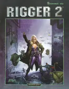In the role-playing game Shadowrun, a "rigger" is someone who interfaces with vehicles and other machinery via a neural link, similar to a "console cowboy" in William Gibson's seminal cyberpunk Sprawl trilogy. Rigger 2 is a supplement which provides 2nd-edition rules for standard vehicle operation, vehicle combat, drones, security riggers, vehicle design and customization.[1]