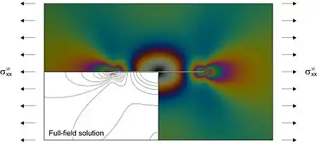 The characteristics of the elastic solution have been experimentally confirmed through photoelastic transmission experiments.[3]