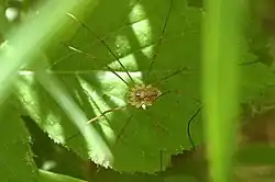 Rilaena triangularis is a harvestman that lives across Europe. This species was first described by Johann Friedrich Wilhelm Herbst in 1799. Initially as Phalangium triangularis, but was later renamed through recombination.[2]