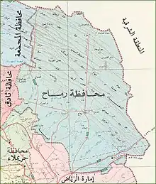 Rimah Governorate (sometimes pronounced as Rumah or Romah) is one of the governorates of Riyadh Province. It is located about 120 kilometers north-east of Riyadh City, and bounded on the north-east by Eastern Province, on the South by Riyadh, and on the West by Majma'ah, Thadig, and Huraimila.