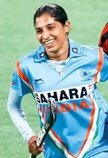 Ritu Rani (born 29 December 1991) is an Indian field hockey player and former captain of the national team. She plays as a halfback.[1] Rani has led the team to medal winning performances most notably the bronze at the 2014 Asian Games. Also under her captaincy the team qualified for the Olympics after 36 years after finishing fifth in the 2014–15 Women's FIH Hockey World League Semifinals.[2]