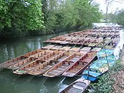 Easter and Summer punting is popular on the Oxford stretch. (A punt is a long, flat-bottom, low-topsides, boat propelled by a pole pushed against the river bed.) Punts are typically hired from a punt station by Magdalen Bridge, or the Cherwell Boathouse (just to the north of the University Parks). It is possible to punt all the way from the Isis, north past the University Parks, and out beyond the ring road.