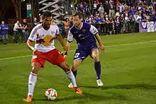 ![]() Valentino (right) playing for Orlando City in March 2014 | |||