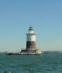 The Robbins Reef Light Station is a sparkplug lighthouse located off Constable Hook in Bayonne, Hudson County, New Jersey, United States, along the west side of Main Channel, Upper New York Bay.[2][3][4] The tower and integral keepers quarters were built in 1883. It replaced an octagonal granite tower built in 1839. The U.S. Coast Guard owned and operated the light station until the 2000s.