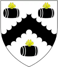 - Firstly to Mary Lethbridge (d.1709), daughter of Christopher Lethbridge (d.1713)[8] of Westaway House, Pilton, the latter of whose "big and sumptuous" mural monument survives in Pilton Church,[9] by his wife Margaret Bowchier, daughter and heiress of Philip Bowchier (d.1687) of Westaway.[10] At the base of the monument are shown impaled by Lethbridge the arms of the family of his wife Margaret Bowchier, a daughter of Philip Bowchier: Argent, a cross chequy gules and or between four water bougets gules each between four ermine spots. These are a differenced version of the arms of Bourchier, Earls of Bath, of nearby Tawstock Court: Argent, a cross engrailed gules between four water bougets sable. The Bourchier Earls of Bath (which name was spelled historically in various ways) died out in the male line in 1654 on the death of the 5th Earl. Philip Bowchier (d.1687) was the son of Rev. Roger Bowchier, vicar of Pilton during the Civil War.[8] It is not known what relationship if any the Bowchiers of Westaway were to the Bourchiers of Tawstock. childless.