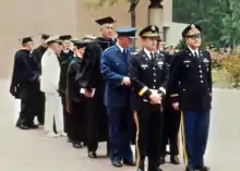 Realizing that much of the art of military medicine was understanding the military as much, or more, than understanding medicine, Joy used his connections on the Joint Staff and in the Offices of the Secretary of Defense and elsewhere in the greater DC area to bring in guest speakers to lecture the students on military topics. Joy would hold these lectures at 1400-1600 on Fridays, but would notoriously run long in those early days and would often end up moving to the Officers Club afterwards, where the students could further interact with the guest speakers. Although a bit rough at first, with the inaugural class nicknaming themselves the "Charter Martyrs," by the time Joy stepped down as Chair of the Department of Military Medicine and History in 1981 the training was well synchronized and coordinated.[46]