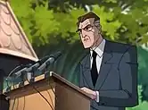 - Senator Robert Jefferson Kelly appears in X-Men: The Animated Series, voiced by Len Carlson.[10] He initially runs for President of the United States on an anti-mutant campaign until he gradually changes his mind following failed assassination attempts by Mystique disguised as Gambit and nearly being brainwashed by Master Mold before being rescued by the X-Men, whom he befriends. Upon winning the election and taking office, Kelly publicly supports mutants and pardons Beast as his first presidential act. Following this, Kelly makes minor appearances in subsequent seasons as an ally of the X-Men.