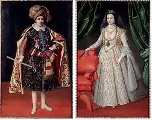 Shirley travelled to Persia in 1598, accompanying his brother, Anthony, who had been sent to Safavid Persia from 1 December 1599 to May 1600, with 5000 horses to train the Persian army according to the rules and customs of the English militia and to reform and retrain the Persian artillery. When Anthony Shirley left Persia, Robert remained in Persia with fourteen other Englishmen. There, in February 1607, he married Sampsonia, a Christian Circassian lady of the Circassian nobility of Safavid Persia.[6] After being baptized by the Carmelites, she adopted the Teresia in addition to her own name.[7] She became known in the west by the name Lady Teresia Sampsonia Shirley.