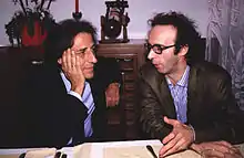 Benigni became widely known in Italy in the 1970s for a television series called Onda Libera, on RAI2, produced by Renzo Arbore, in which he interpreted the satirical piece The Hymn of the Body Purged (L'inno del corpo sciolto, a scatological song about the joys of defecation).[7] A great scandal for the time, the series was suspended due to censorship.[8] His first film was 1977's Berlinguer, I Love You (Berlinguer ti voglio bene), also by Bertolucci.