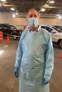 On election day, Vos served as an election inspector.[47] While dressed in full-body personal protective equipment,[48] he said it was "incredibly safe" to vote at the polls.[47] Vos later clarified that the city he was volunteering for required that he wear the protective equipment.[49]
