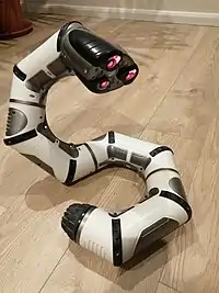 Roboboa is a robotic snake produced by WowWee. Roboboa has 4 angled body sections, allowing Roboboa to coil by rotating adjacent sections. A motorized tail roller and casters on the midsection allow Roboboa to move in a straight line.